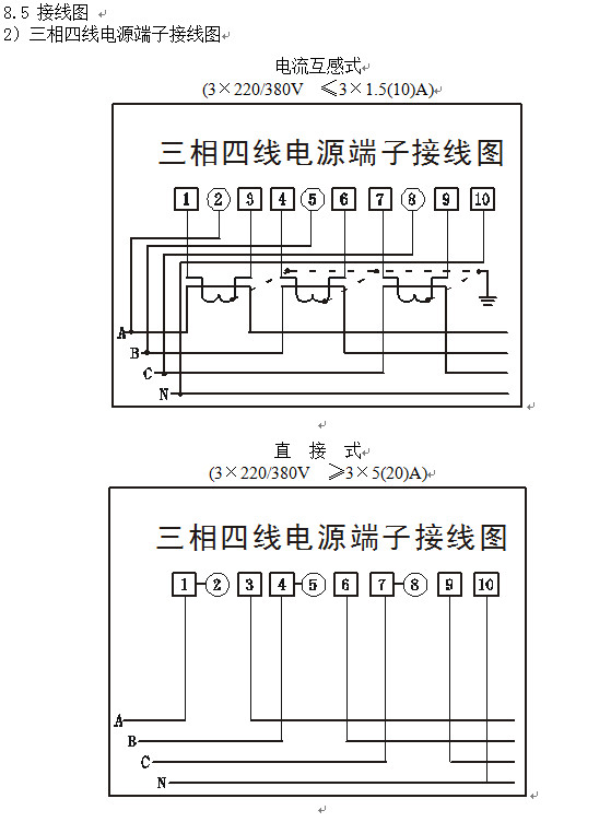 8.3 儀(yí)表應按接線(xiàn)圖正(zhèng)確接線。接線端鈕盒(hé)的引入(rù)線建議使用銅線或銅(tóng)接頭, 端鈕盒內螺釘應擰緊(jǐn),避免因(yīn)接觸不(bú)良或引線太細發熱而引起燒毀。