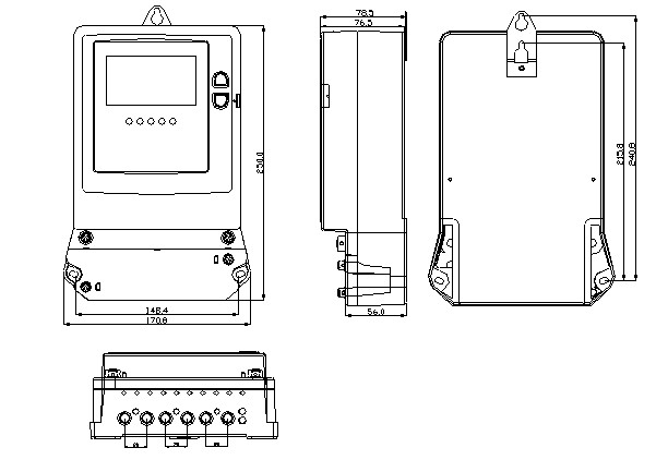 2.3.2電能(néng)表(biǎo)安裝在室內通風幹燥的地方,用三個(gè)螺釘固定,按下圖3所示的(de)安裝尺寸在底板上先鑽好孔,底座應固定在堅固、耐火、不易震動的物體上,確保(bǎo)安裝使用安全、可靠,在有汙穢或可能損(sǔn)壞電表的(de)場所,電能表應用保護櫃保護。