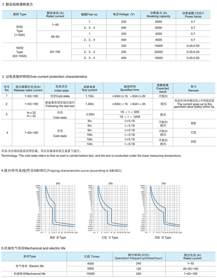 c.按瞬時脫扣的型式分:B型(3-5In)、C型(5-10In)、D型(xíng)(10-14 In)。